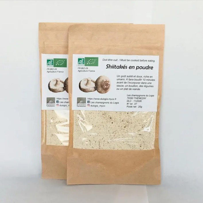 Nos champignonsSéchés entiers ou en poudre pour agrémenter vos recettes.